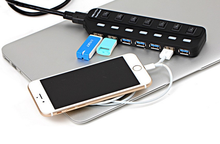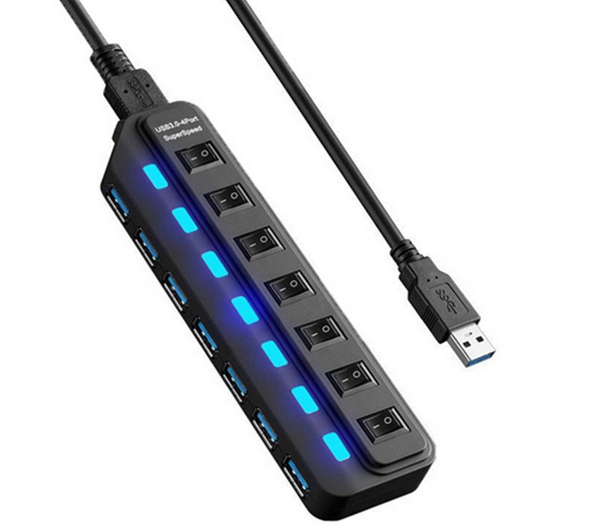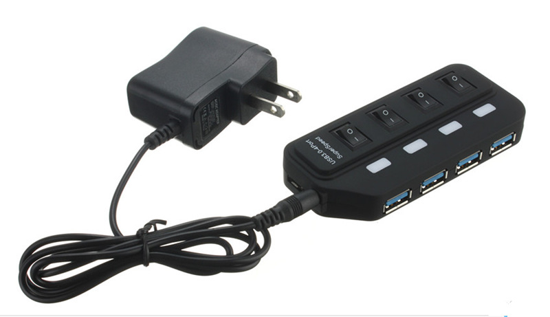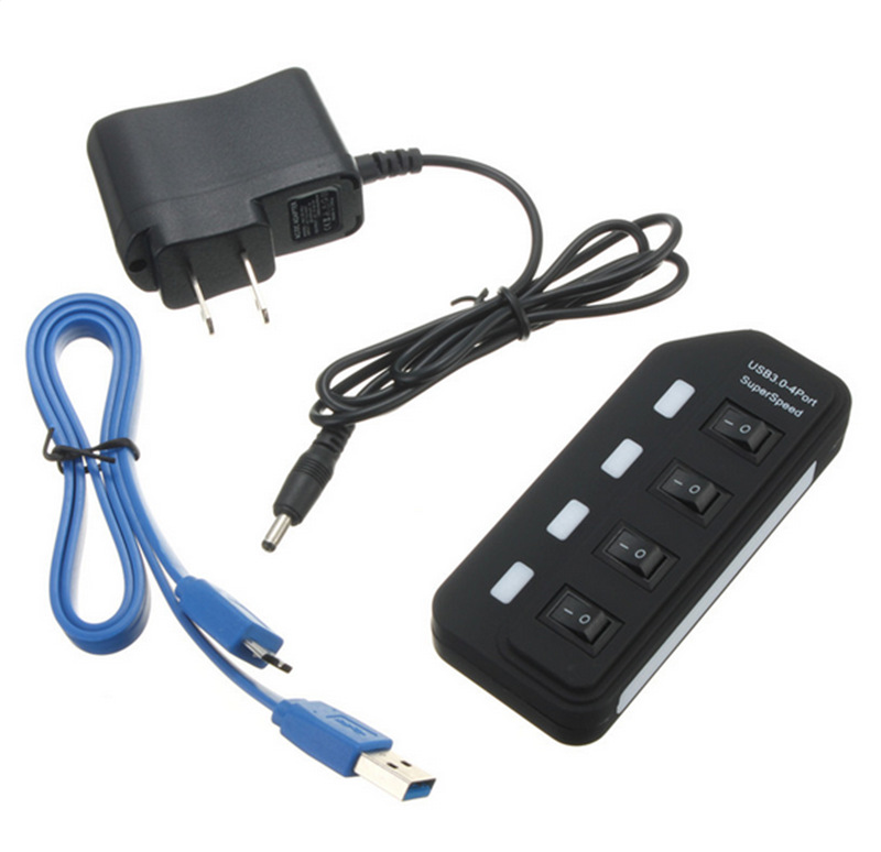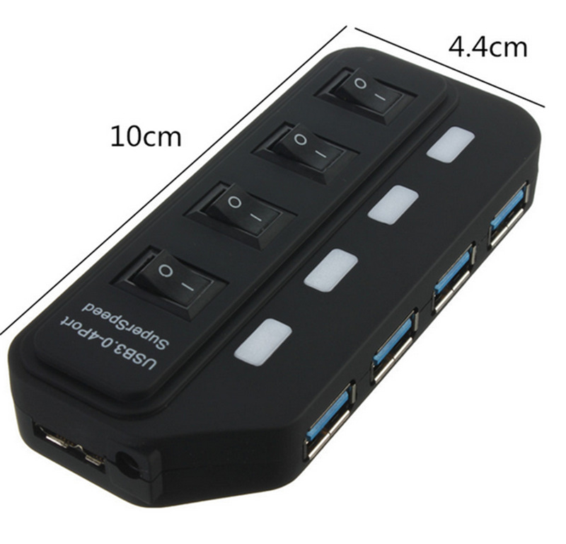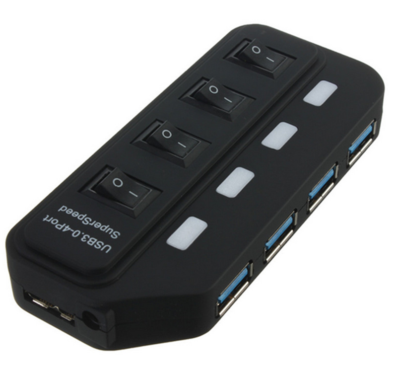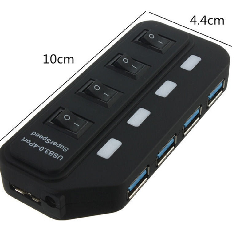 High-Speed USB 3.0 Hub with 4 Ports & Individual Switches